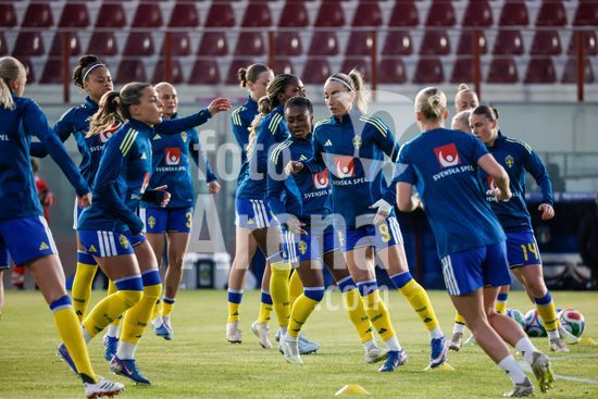 2897882 Treino da selecao feminina sueca durante o aquecimento para o jogo do Grupo A1 das Eliminatorias Europeias entre Italia e Suecia, no Estadio Granillo, em Reggio Calabria, Italia. (FRANCESCO FARINA / SPP)