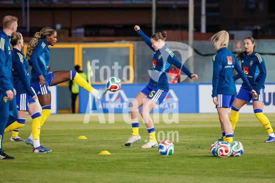 2897881 Treino da selecao feminina sueca durante o aquecimento para o jogo do Grupo A1 das Eliminatorias Europeias entre Italia e Suecia, no Estadio Granillo, em Reggio Calabria, Italia. (FRANCESCO FARINA / SPP)