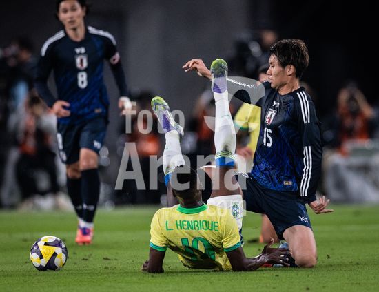 2823697 Luiz Henrique do Brasil e Daichi Kamada do Japão disputam a posse de bola durante o jogo amistoso entre Japão e Brasil no Estádio Ajinomoto em Tóquio, Japão. (Ricardo Nogueira/SPP)