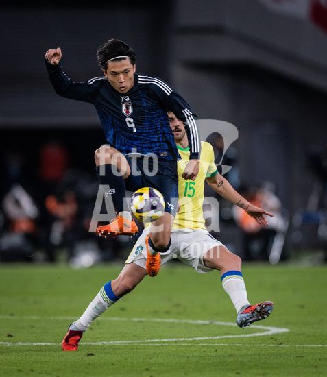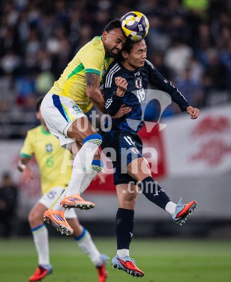 2823713 Fabricio Bruno do Brasil e Ayase Ueda do Japão disputam a posse de bola durante o jogo amistoso entre Japão e Brasil no Estádio Ajinomoto em Tóquio, Japão. (Ricardo Nogueira/SPP)