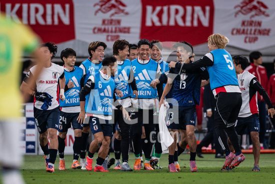 2823683 Reservas do Japão comemora apos ganhar o jogo amistoso entre Japão e Brasil no Estádio Ajinomoto em Tóquio, Japão. (Ricardo Nogueira/SPP)