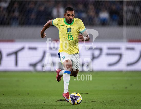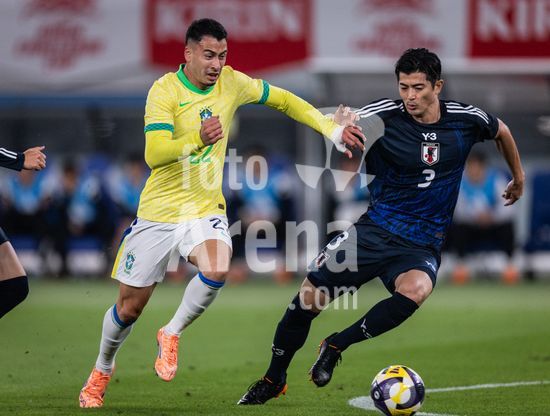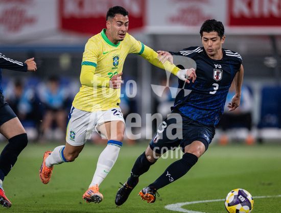 2823681 Lucas Beraldo do Brasil e Sh?to Machino do Japão disputam a posse de bola durante o jogo amistoso entre Japão e Brasil no Estádio Ajinomoto em Tóquio, Japão. (Ricardo Nogueira/SPP)