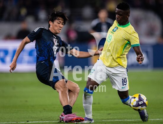 2823689 Luiz Henrique do Brasil e Keito Nakamura do Japão disputam a posse de bola durante o jogo amistoso entre Japão e Brasil no Estádio Ajinomoto em Tóquio, Japão. (Ricardo Nogueira/SPP)