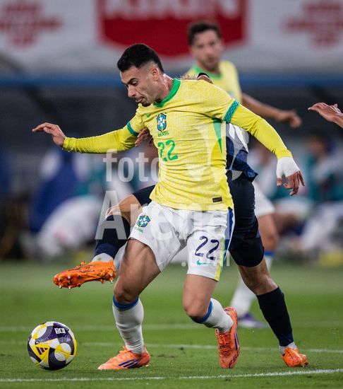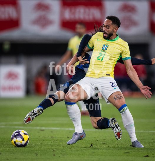 2823702 Matheus Cunha do Brasil em ação durante o jogo amistoso entre Japão e Brasil no Estádio Ajinomoto em Tóquio, Japão. (Ricardo Nogueira/SPP)