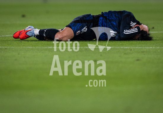 2823710 Ayase Ueda do Japão machucado durante o jogo amistoso entre Japão e Brasil no Estádio Ajinomoto em Tóquio, Japão. (Ricardo Nogueira/SPP)