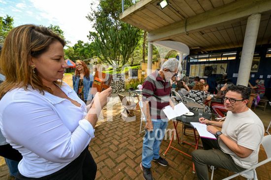 2838505 O chargista Jean Galvão assina diversos livros de sua autoria durante o lançamento e abertura de sua exposição no Atelier De Etser .