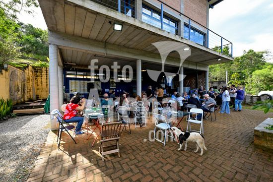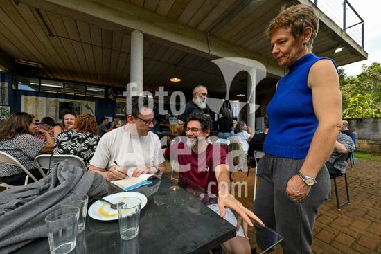 2838493 O chargista Jean Galvão assina diversos livros de sua autoria durante o lançamento e abertura de sua exposição no Atelier De Etser .