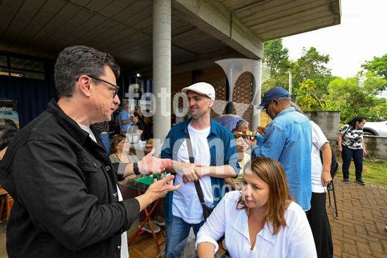 2838484 O chargista Jean Galvão assina diversos livros de sua autoria durante o lançamento e abertura de sua exposição no Atelier De Etser .