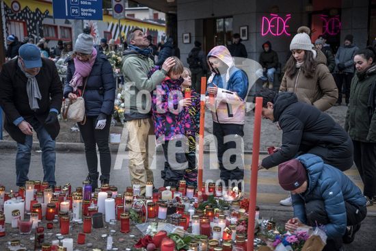 ny020126103111 Mourners gather on Friday, Jan. 2, 2026, at an impromptu memorial near the scene of a fatal fire in the ski resort town of Crans-Montana, Switzerland. The authorities in Switzerland were working on Friday to identify bodies and pinpoint the cause of a fire that ripped through a popular bar during a New YearÕs celebration in the Alps, killing around 40 people and injuring more than 100 others. (Til B?rgy/The New York Times/Fotoarena)