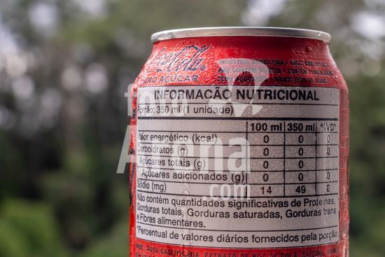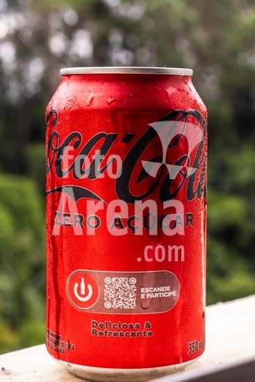 Imagem detalhada da parte superior de uma lata de alumínio vermelha de uma Coca-Cola Zero açúcar em São Paulo, com o anel de abertura em destaque e gotículas de água condensada. A foto ilustra a importância da reciclagem de embalagens de bebidas, um tema crucial para a educação ambiental e para discussões sobre sustentabilidade e gestão de resíduos no Brasil. A lata de alumínio é um exemplo de sucesso na logística reversa e na economia circular, com altas taxas de reaproveitamento no país. Ideal para matérias sobre meio ambiente, consumo, indústria de bebidas, ciências, geografia e estudos sociais, abordando o ciclo dos materiais e o impacto ambiental do descarte incorreto.