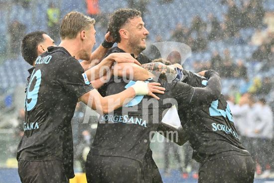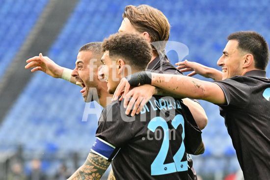 2864726 Apos o gol de Leonardo Spinazzola, o campeonato italiano Serie A 2025-2026 da temporada 2025-2026 foi decidido no Estadio Olimpico, na Italia. (Felice De Martino/SPP)