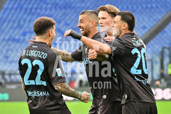 2864724 Apos o gol de Leonardo Spinazzola, o campeonato italiano Serie A 2025-2026 da temporada 2025-2026 foi decidido no Estadio Olimpico, na Italia. (Felice De Martino/SPP)