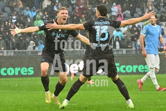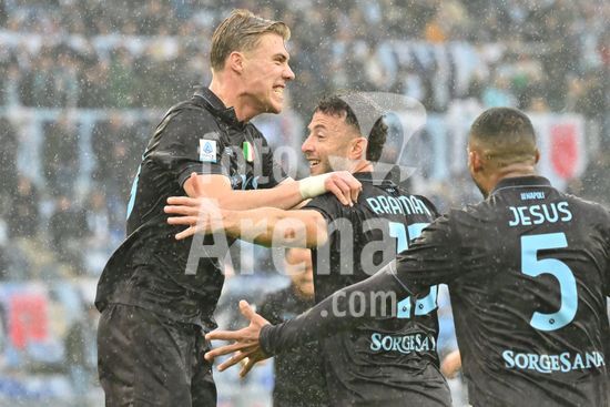 2864758 Apos o gol de Amir Rrahmani, o jogo de futebol do campeonato italiano Serie A 2025-2026 entre Lazio e Napoli, no estadio Olimpico, Italia, aconteceu no estadio. (Felice De Martino/SPP)