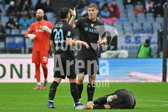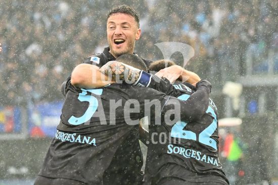 2864747 Apos o gol de Amir Rrahmani, o jogo de futebol do campeonato italiano Serie A 2025-2026 entre Lazio e Napoli, no estadio Olimpico, Italia, aconteceu no estadio. (Felice De Martino/SPP)