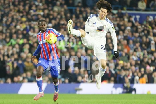 2861549 Ao Tanaka (22 Leeds United) controla a bola durante a partida da Premier League entre Leeds United e Crystal Palace em Elland Road em Leeds, Inglaterra, em 20 de dezembro de 2025. (Sean Chandler / SPP)