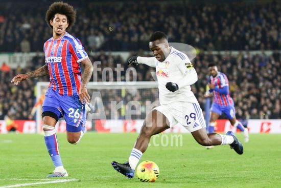 2861553 Wilfried Gnonto (29 Leeds United) controla a bola durante a partida da Premier League entre Leeds United e Crystal Palace em Elland Road em Leeds, Inglaterra, em 20 de dezembro de 2025. (Sean Chandler / SPP)