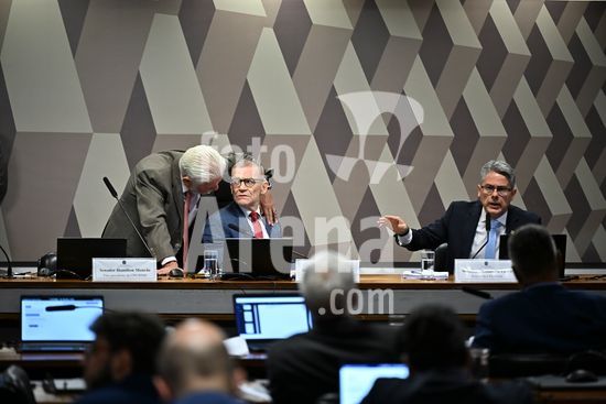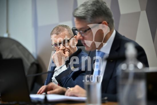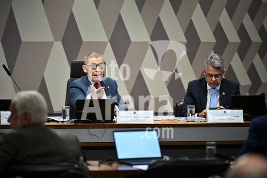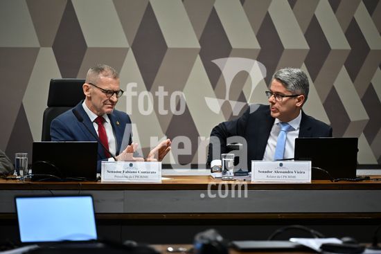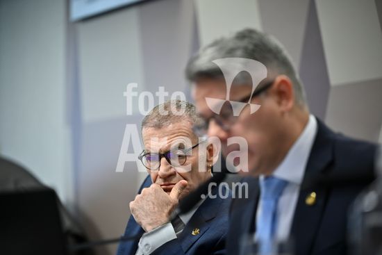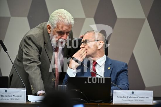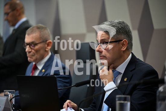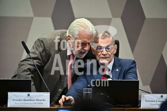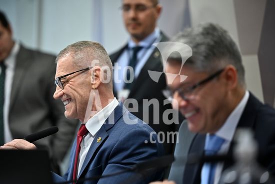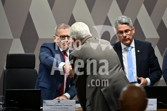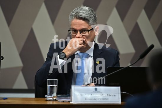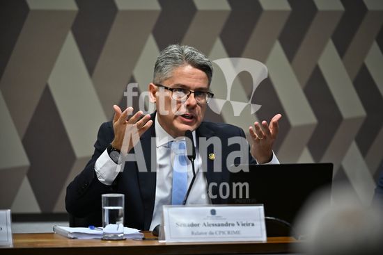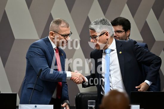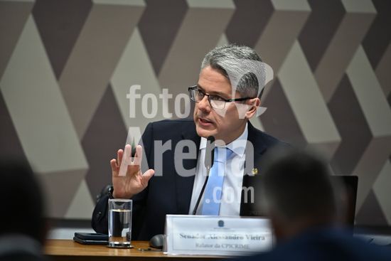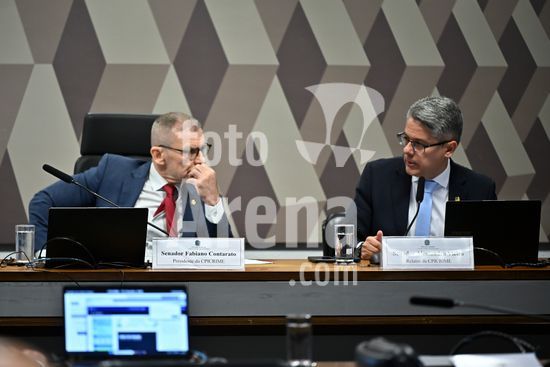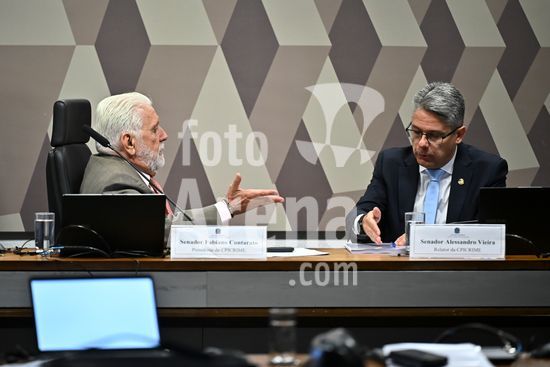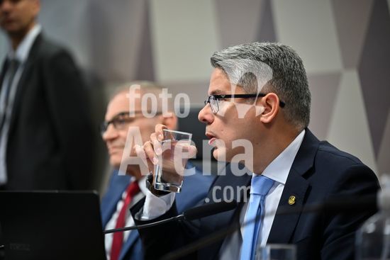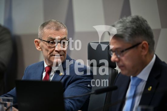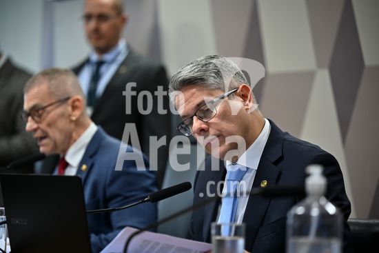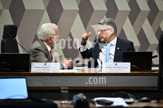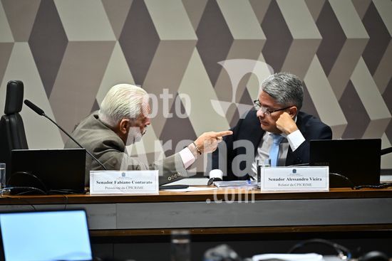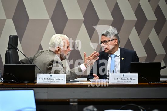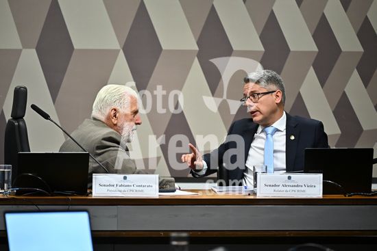 Foto, Senadores Fabiano Contarato e Alessandro Vieira durante fala do Senador Jaques Wagner Nesta terça (14) o senador Alessandro Vieira faz a leitura do Relatório CPI do Crime Organizado e pede o indiciamento de três ministros do STF Dias Toffoli, Alexandre de Moraes e Gilmar Mendes e do PGR Paulo Gonet.