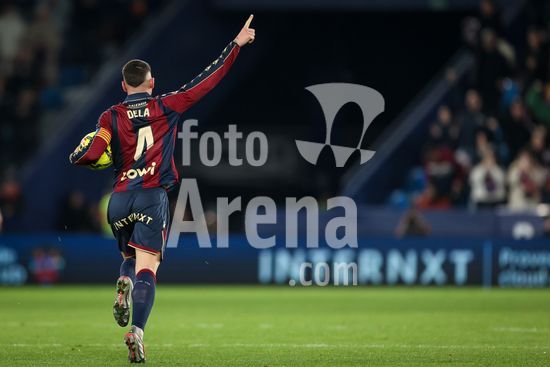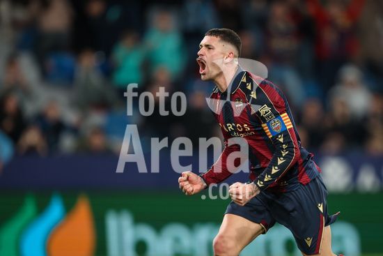 2861256 Adrián De la Fuente comemora o primeiro gol durante Levante x Real Sociedad realizada no Estadio Ciutat de Valencia em valência, CV.