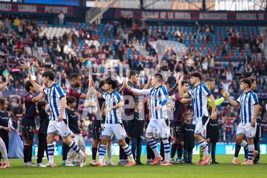 2861230 As equipes do Levante e da Real Sociedad se cumprimentam durante Levante x Real Sociedad realizada no Estadio Ciutat de Valencia em valência, CV.