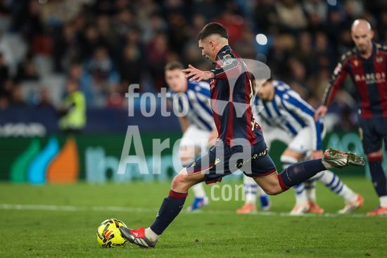 2861255 Adrián De la Fuente cobra o pênalti durante Levante x Real Sociedad realizada no Estadio Ciutat de Valencia em valência, CV.