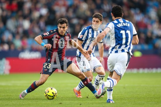 2861275 Sergio Gómez em ação durante Levante x Real Sociedad realizada no Estadio Ciutat de Valencia em valência, CV.