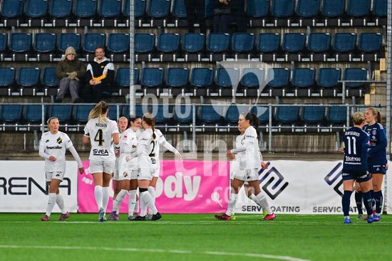 2825821 Linkoping comemora gol no jogo da Liga Sueca OBOS Damallsvenskan em 17 de outubro de 2025 entre Linkoping FC e AIK na Bilborsen Arena em Linkoping, Suecia (Peter Sonander/SPP)