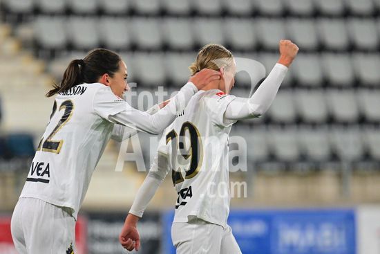 2825857 Matilda Plan (29 AIK) e Anna Oscarsson (22 AIK) comemoram gol durante o jogo da Liga Sueca OBOS Damallsvenskan em 17 de outubro de 2025 entre Linkoping FC e AIK na Bilborsen Arena em Linkoping, Suecia (Peter Sonander/SPP)