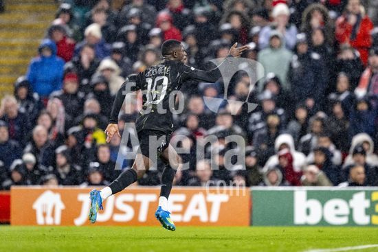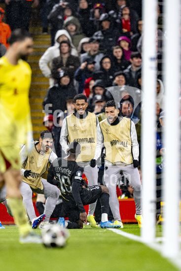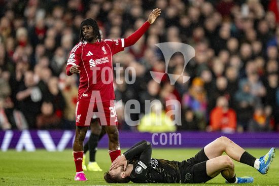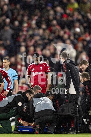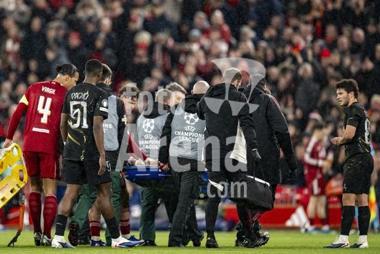 2924670 LIVERPOOL, INGLATERRA - 14 DE ABRIL: Hugo Ekitike, do Liverpool, lesionado durante uma partida da Liga dos Campeoes da UEFA 2025/26 entre Liverpool e Paris Saint-Germain, em Liverpool, em 14 de abril de 2026. (Will Palmer/SPP)