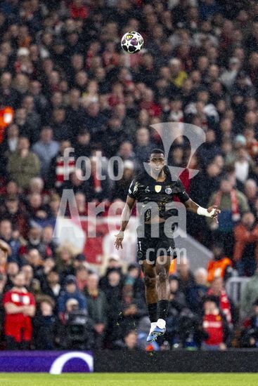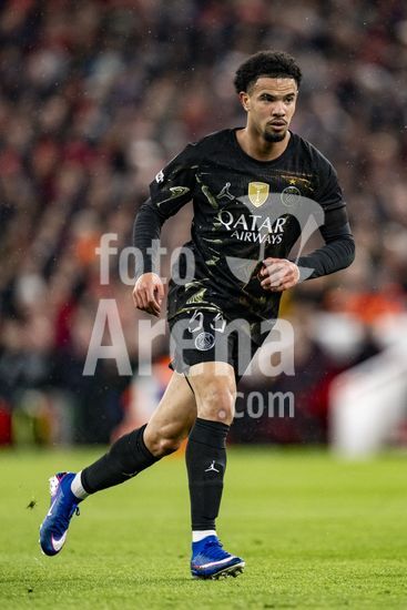 2924808 LIVERPOOL, INGLATERRA - 14 DE ABRIL: Willian Pacho, do Paris Saint-Germain, durante uma partida da Liga dos Campeoes da UEFA 2025/26 entre Liverpool e Paris Saint-Germain, em Liverpool, em 14 de abril de 2026. (Will Palmer/SPP)