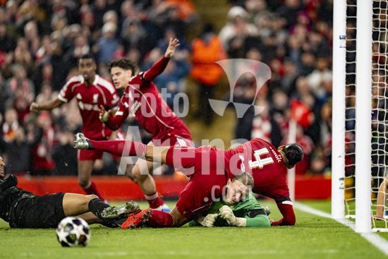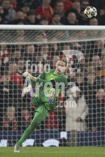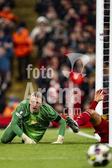 2924787 LIVERPOOL, INGLATERRA - 14 DE ABRIL: Giorgi Mamardashvili, do Liverpool, durante uma partida da Liga dos Campeoes da UEFA 2025/26 entre Liverpool e Paris Saint-Germain, em Liverpool, em 14 de abril de 2026. (Will Palmer/SPP)