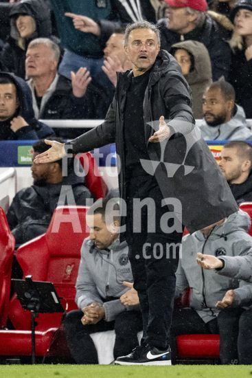 2924673 LIVERPOOL, INGLATERRA - 14 DE ABRIL: O tecnico do Paris Saint-Germain, Luis Enrique, gesticula durante a partida da Liga dos Campeoes da UEFA 2025/26 entre Liverpool e Paris Saint-Germain, em Liverpool, em 14 de abril de 2026. (Will Palmer/SPP)