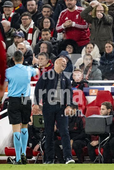 2924672 LIVERPOOL, INGLATERRA - 14 DE ABRIL: Arne Slot, treinador do Liverpool, reage durante uma partida da Liga dos Campeoes da UEFA 2025/26 entre Liverpool e Paris Saint-Germain em Liverpool, em 14 de abril de 2026. (Will Palmer/SPP)