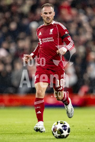 2924675 LIVERPOOL, INGLATERRA - 14 DE ABRIL: Alexis Mac Allister, do Liverpool, em acao durante uma partida da Liga dos Campeoes da UEFA 2025/26 entre Liverpool e Paris Saint-Germain, em Liverpool, em 14 de abril de 2026. (Will Palmer/SPP)