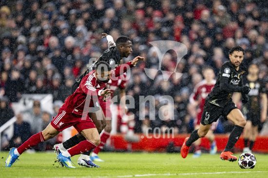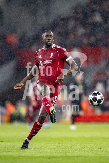 2924784 LIVERPOOL, INGLATERRA - 14 DE ABRIL: Ibrahima Konate, do Liverpool, durante uma partida da Liga dos Campeoes da UEFA 2025/26 entre Liverpool e Paris Saint-Germain, em Liverpool, em 14 de abril de 2026. (Will Palmer/SPP)