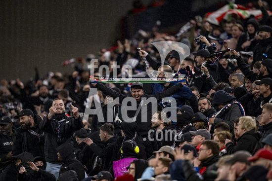 2924969 LIVERPOOL, INGLATERRA - 14 DE ABRIL: Torcedores do PSG comemoram a vitoria do PSG sobre o Paris Saint-Germain em partida valida pela Liga dos Campeoes da UEFA 2025/26, realizada em Liverpool em 14 de abril de 2026. (Will Palmer/SPP)