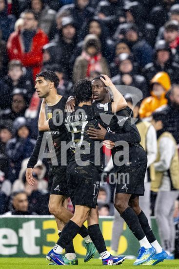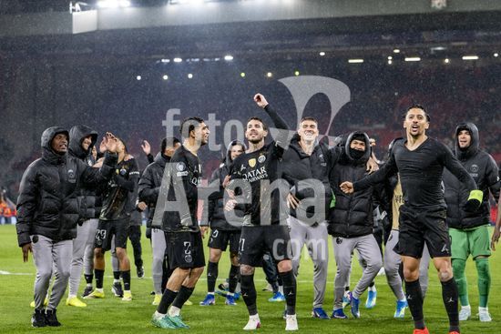2924978 LIVERPOOL, INGLATERRA - 14 DE ABRIL: Jogadores do PSG comemoram diante da torcida apos a vitoria sobre o Paris Saint-Germain pela Liga dos Campeoes da UEFA 2025/26, em Liverpool, no dia 14 de abril de 2026. (Will Palmer/SPP)