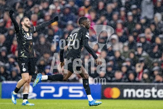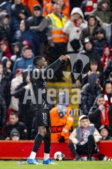 2924813 LIVERPOOL, INGLATERRA - 14 DE ABRIL: Ousmane Dembele, do Paris Saint-Germain, comemora apos marcar o primeiro gol da equipe durante a partida da Liga dos Campeoes da UEFA 2025/26 entre Liverpool e Paris Saint-Germain, em Liverpool, em 14 de abril de 2026. (Will Palmer/SPP)