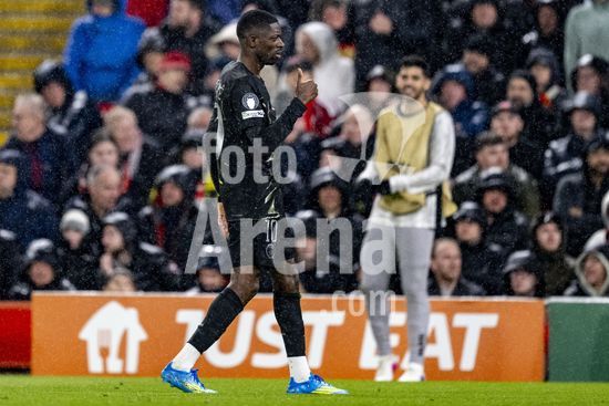 2924801 LIVERPOOL, INGLATERRA - 14 DE ABRIL: Ousmane Dembele, do Paris Saint-Germain, comemora apos marcar o primeiro gol da equipe durante a partida da Liga dos Campeoes da UEFA 2025/26 entre Liverpool e Paris Saint-Germain, em Liverpool, em 14 de abril de 2026. (Will Palmer/SPP)