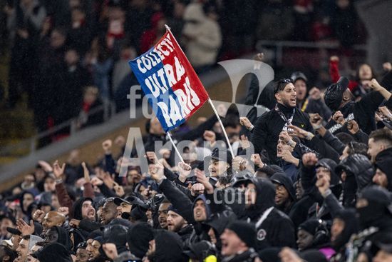 2924992 LIVERPOOL, INGLATERRA - 14 DE ABRIL: Torcedores do PSG durante uma partida da Liga dos Campeoes da UEFA 2025/26 entre Liverpool e Paris Saint-Germain em Liverpool, em 14 de abril de 2026. (Will Palmer/SPP)