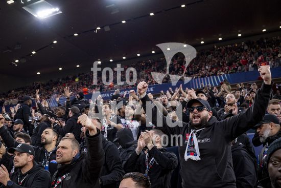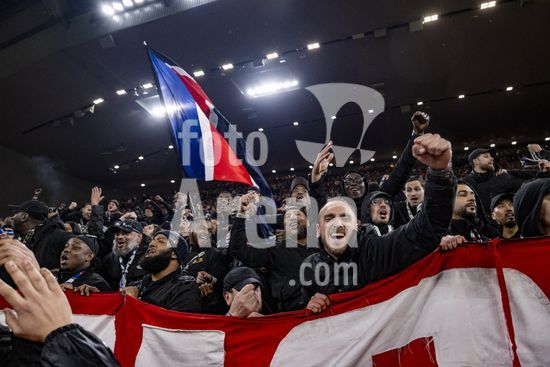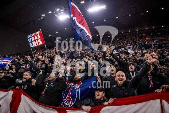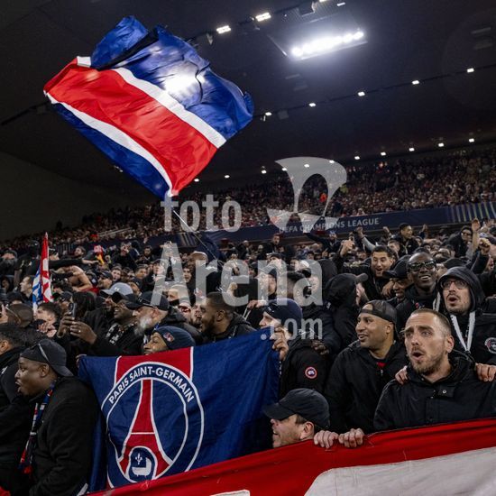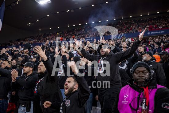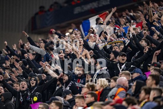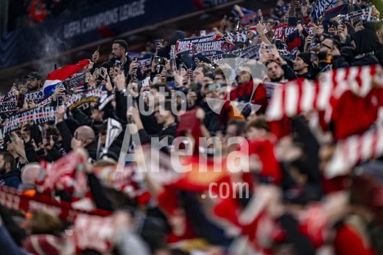 2924805 LIVERPOOL, INGLATERRA - 14 DE ABRIL: Torcedores do PSG durante uma partida da Liga dos Campeoes da UEFA 2025/26 entre Liverpool e Paris Saint-Germain em Liverpool, em 14 de abril de 2026. (Will Palmer/SPP)