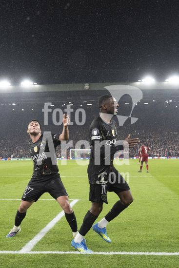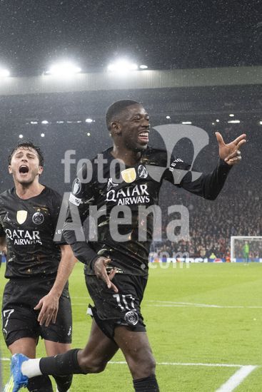 2924810 LIVERPOOL, INGLATERRA - 14 DE ABRIL: Ousmane Dembele, do Paris Saint-Germain, comemora apos marcar o primeiro gol da equipe durante a partida da Liga dos Campeoes da UEFA 2025/26 entre Liverpool e Paris Saint-Germain, em Liverpool, em 14 de abril de 2026. (Will Palmer/SPP)