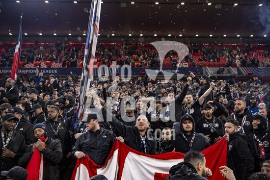 2924970 LIVERPOOL, INGLATERRA - 14 DE ABRIL: Torcedores do PSG comemoram a vitoria do PSG sobre o Paris Saint-Germain em partida valida pela Liga dos Campeoes da UEFA 2025/26, realizada em Liverpool em 14 de abril de 2026. (Will Palmer/SPP)