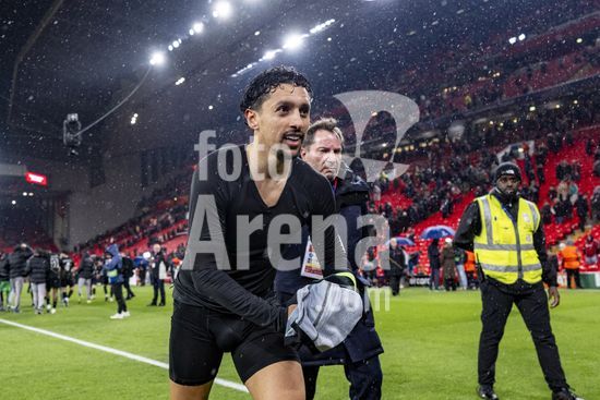 2924957 LIVERPOOL, INGLATERRA - 14 DE ABRIL: Marquinhos, do Paris Saint-Germain, entrega a camisa aos torcedores apos a vitoria do Liverpool sobre o Paris Saint-Germain pela Liga dos Campeoes da UEFA 2025/26, em Liverpool, no dia 14 de abril de 2026. (Will Palmer/SPP)