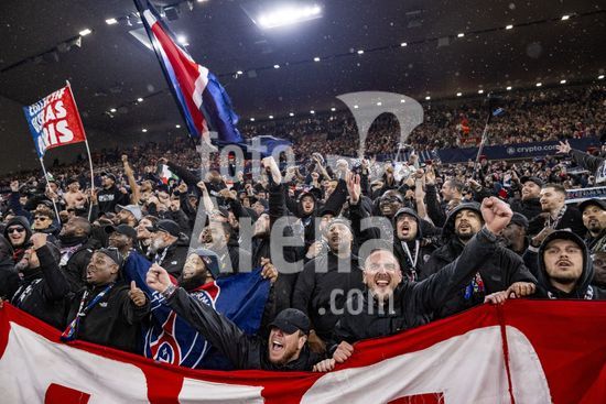 2924960 LIVERPOOL, INGLATERRA - 14 DE ABRIL: Torcedores do PSG comemoram a vitoria do PSG sobre o Paris Saint-Germain em partida valida pela Liga dos Campeoes da UEFA 2025/26, realizada em Liverpool em 14 de abril de 2026. (Will Palmer/SPP)