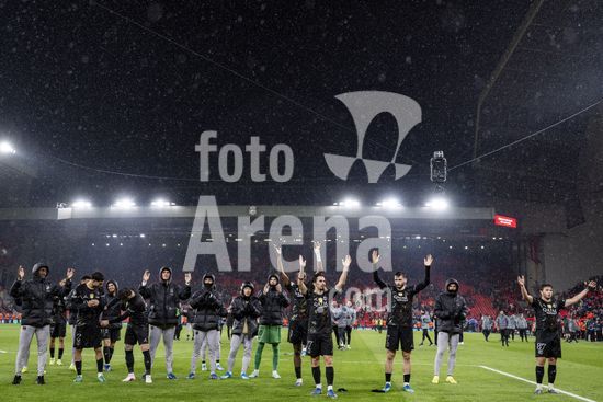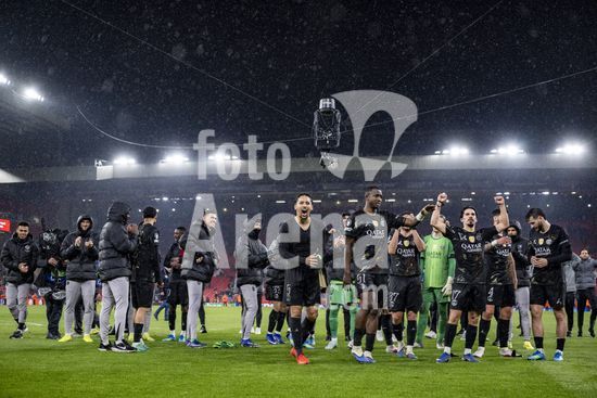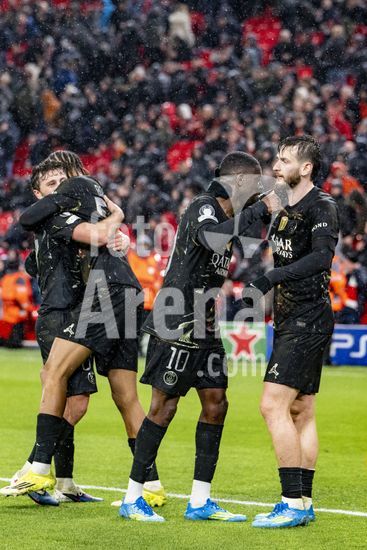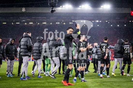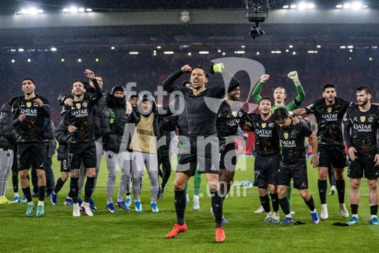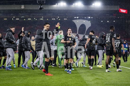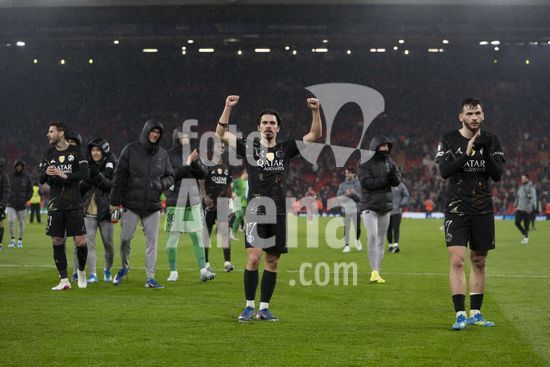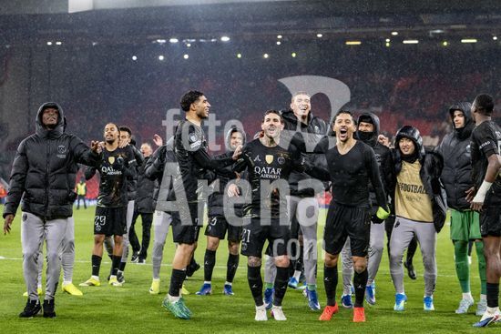 2924981 LIVERPOOL, INGLATERRA - 14 DE ABRIL: Jogadores do PSG comemoram em frente aos torcedores apos a vitoria sobre o Paris Saint-Germain pela Liga dos Campeoes da UEFA 2025/26, em Liverpool, no dia 14 de abril de 2026. (Will Palmer/SPP)