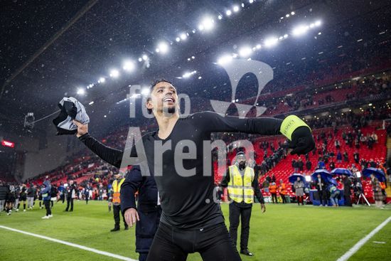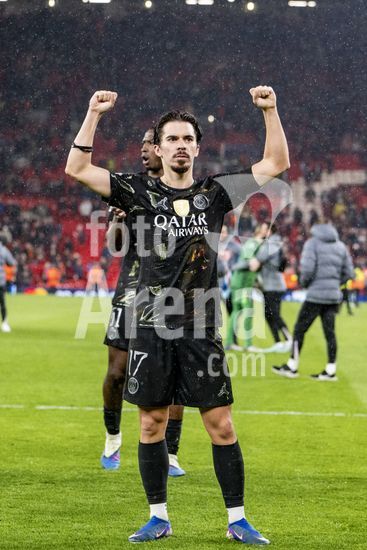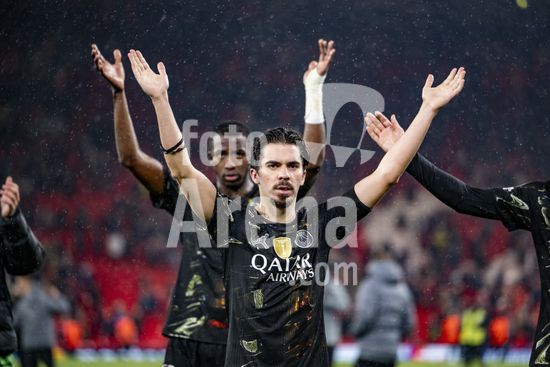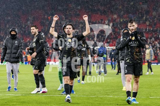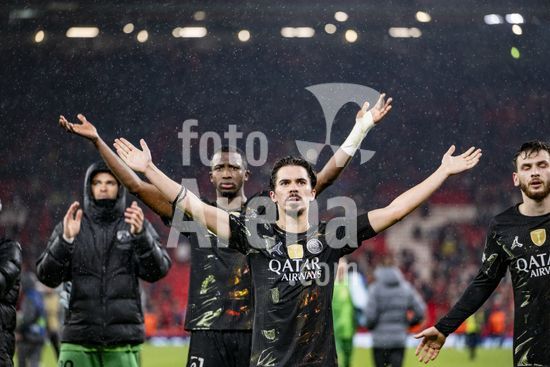 2924979 LIVERPOOL, INGLATERRA - 14 DE ABRIL: Vitinha, do Paris Saint-Germain, e jogadores do PSG comemoram em frente aos torcedores apos a vitoria sobre o Paris Saint-Germain pela Liga dos Campeoes da UEFA 2025/26, em Liverpool, no dia 14 de abril de 2026. (Will Palmer/SPP)