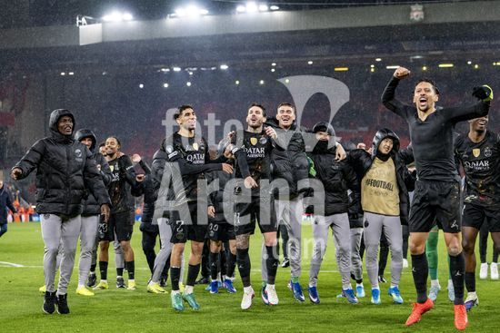 2924975 LIVERPOOL, INGLATERRA - 14 DE ABRIL: Jogadores do PSG comemoram diante da torcida apos a vitoria sobre o Paris Saint-Germain pela Liga dos Campeoes da UEFA 2025/26, em Liverpool, no dia 14 de abril de 2026. (Will Palmer/SPP)