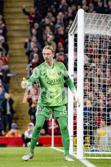 2924987 LIVERPOOL, INGLATERRA - 14 DE ABRIL: Matvey Safonov, do Paris Saint-Germain, durante uma partida da Liga dos Campeoes da UEFA 2025/26 entre Liverpool e Paris Saint-Germain, em Liverpool, em 14 de abril de 2026. (Will Palmer/SPP)