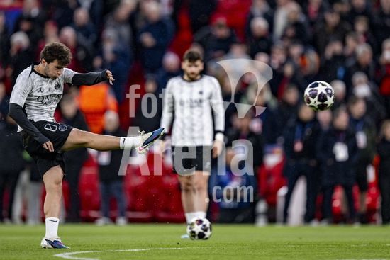 2924990 LIVERPOOL, INGLATERRA - 14 DE ABRIL: Joao Neves, do Paris Saint-Germain, antes da partida da Liga dos Campeoes da UEFA 2025/26 entre Liverpool e Paris Saint-Germain, em Liverpool, em 14 de abril de 2026. (Will Palmer/SPP)