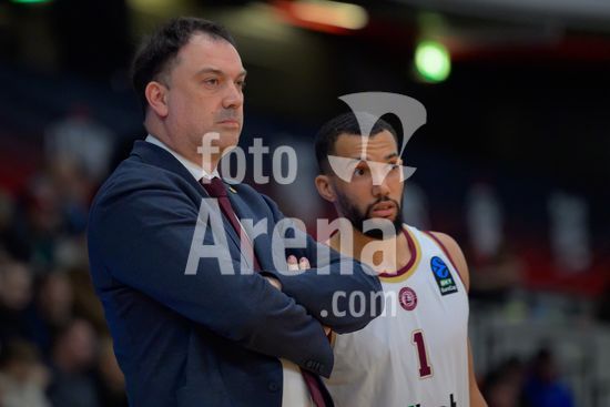 2882254 O treinador do Lietkabelis Panevezys, Nenad Canak, e Jamel Morris (1 Lietkabelis Panevezys) durante o jogo da BKT EuroCup entre London Lions e Lietkabelis Panev?zys na Copper Box Arena em Londres, Inglaterra. (Foto de Keeran Marquis/Sports Press Photo/SPP) (Keeran Marquis/SPP)